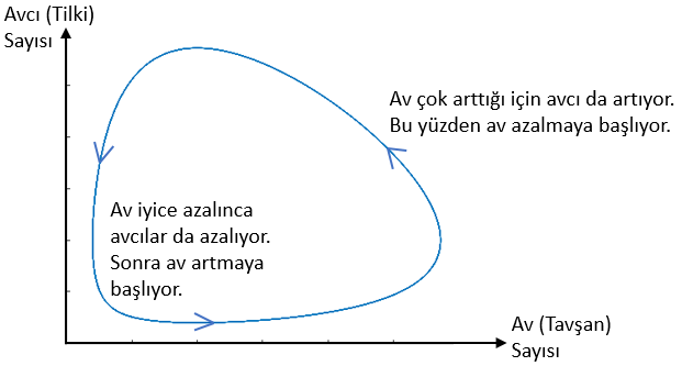 Bazen sebep sonuç ilişkileri çevrim şeklinde olabilir. Meselâ ormanda tilkiler artınca tavşanlar azalır, tavşanlar azalınca tilkiler de azalır, tilkiler azalınca tavşanlar artar, tavşanlar artınca tilkiler de artar, ...